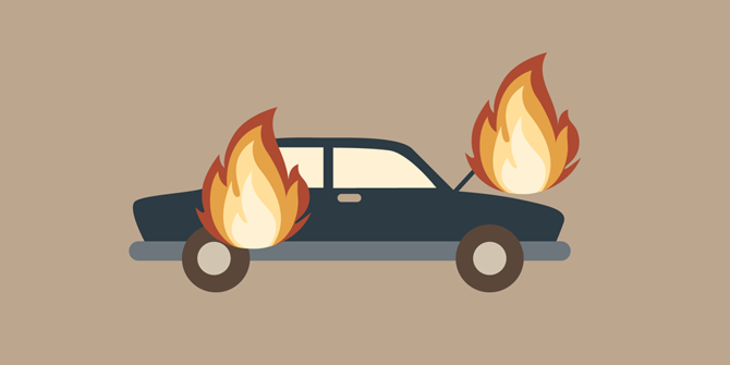 Sebuah mobil mengeluarkan asap tebal di kawasan MT Haryono,